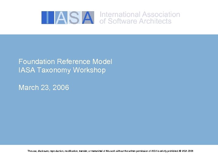 Foundation Reference Model IASA Taxonomy Workshop March 23, 2006 The use, disclosure, reproduction, modification, transfer, or transmittal of this work without the written permission of IASA is strictly prohibited. © IASA 2006
