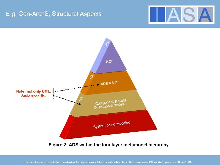 E. g. Gen-Arch. S, Structural Aspects Note: not only UML. Style specific. The use, disclosure, reproduction, modification, transfer, or transmittal of this work without the written permission of IASA is strictly prohibited. © IASA 2006