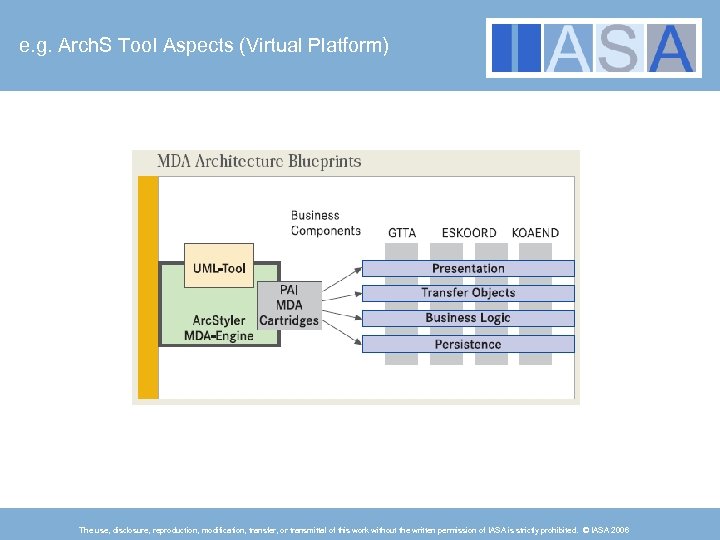 e. g. Arch. S Process, Structural and Tool Aspects (Virtual Platform) The use, disclosure, reproduction, modification, transfer, or transmittal of this work without the written permission of IASA is strictly prohibited. © IASA 2006