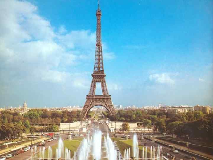 Эйфелева башня (317 м) стала символом Парижа для всего мира. С третьего этажа башни открывается широкая панорама Парижа и Иль-Де-Франс в радиусе 70 км. Там находится кабинет Гюстава Эйфеля. У Эйфелевой башни 1800 железных деталей. 2500000 заклёпак. Предварительно намечалось оставить её на 20 лет, но этот срок был продлен на 70 лет решением правительства в 1910 году! Открыто с 9 часов до полуночи.