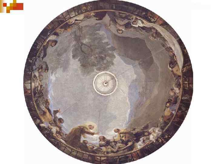 Роспись собора n В 1771 году Гойя возвращается на родину в Сарагосу, и начинается профессиональный творческий путь мастера. n Гойя развивается медленно, его яркая индивидуальность полностью себя выявила только к сорока годам. n В Сарагосе мастер расписывает одну из церквей фресками, исполненными под влиянием Тьеполо, работы которого Гойя вполне мог видеть в Мадриде.