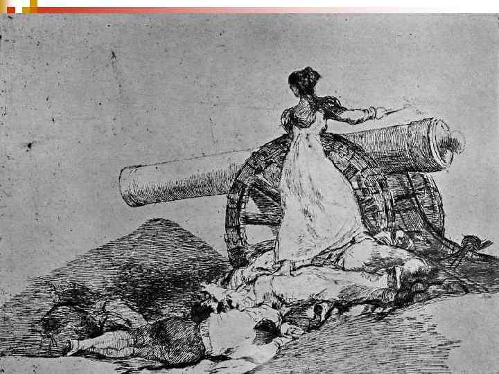 1810 – 1820. Дезастрес (Бедствия войны) n Новая серия офортов Гойи была начата в 1810 году и закончена только в 1820 году. Она состоит из 85 листов офортов и листов смешанной техники (офорт с акватинтой). n Серия обладает огромной выразительной силой документа, свидетельства очевидца этой героической борьбы испанского народа с Наполеоном. n В этих графических работах уже нет злодеев и нечистой силы, как в «Капричос» , но есть жестокий реализм, который позволяет зрителю пережить войну вместе с художником как чудовищную катастрофу. n В «Бедствиях войны» переплетаются множество тем. Это и голод, и грабеж, и разбой победителей. n Особенно выделяются сцены насилия, где израненные человеческие тела выставлены напоказ завоевателями.
