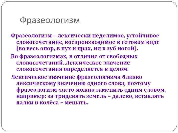 «Фразеология. Понятие фразеологизма. Типы фразеологизмов»