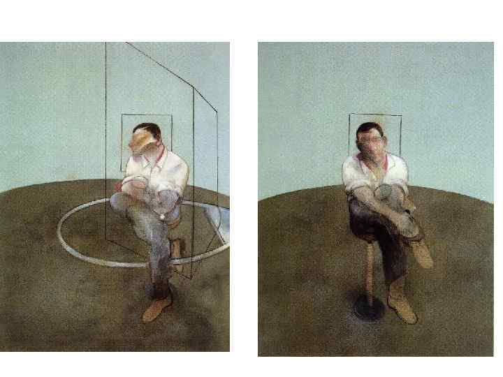 • На картинах Фрэнсиса Бэкона показан мир, где ежедневно рвутся на куски мяса человеческие тела, гибнут дети, льется кровь, что ежедневно совершаются самоубий ства, человек спивается и страдает, гибнет от наркотиков.