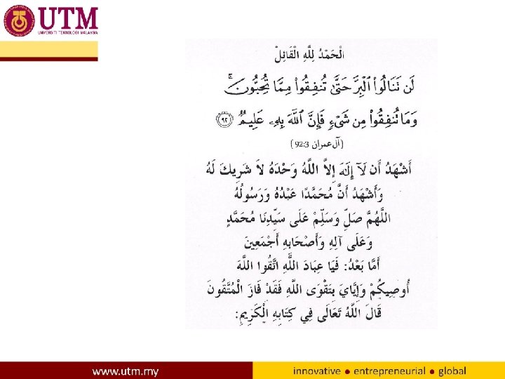 FRIDAY SERMON 27 Jamadilakhir 1436 H / 17 April 2015 WAQF IMAM DAN KHATIB DR, ABDUL RAHMAN BIN HAMZAH DEPUTY DIRECTOR ISLAMIC CENTRE, UTM