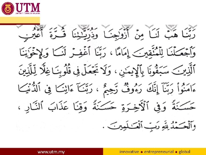 KEPADA PARA JEMAAH SEKALIAN, SILA PENUHKAN SAF YANG KOSONG DIHADAPAN ANDA www. utm. my/islamiccentre/ /pusatislam. utm