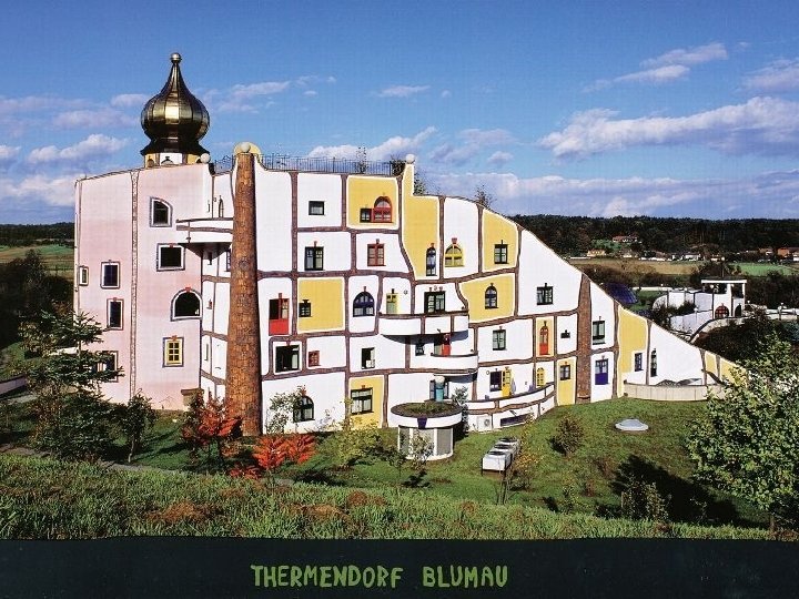 "Kunsthaus" homlokzata - Rogner Bad Bluamu, Austria, a bécsi Kunsthaus mintájára készült Friedensreich Hundertwasser tervei alapján. .