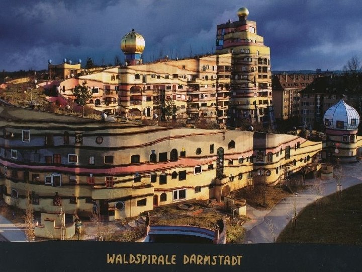 Falgyűrű - lakóépület Darmstadtban (Németország). Az épületkomplexum az „U” formát követi emelkedő ívben, a legmagasabb pontja 12 emelet magas.