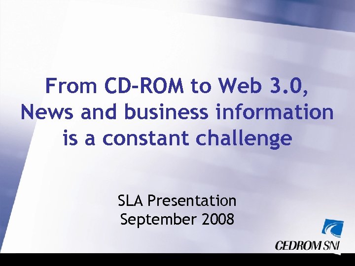 From CD-ROM to Web 3. 0, News and business information is a constant challenge SLA Presentation September 2008