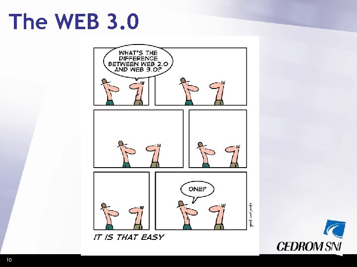 Next step will be. . . Analysis of the search results (Summary) – Taxonomy will be very helpful to cluster the results – Semantic analysis will be very useful to identify strong concepts and entities inside of the full text Creation of content with the content – Web 3. 0 – The Semantic Web 9