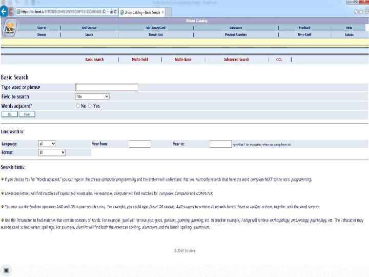 Library services for all user groups: Ø Interlibrary loan Ø International interlibrary loan
