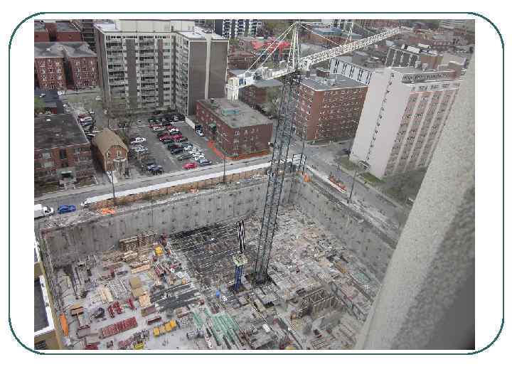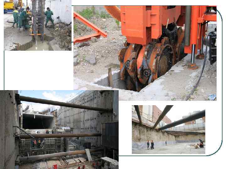 3. Стена в грунте В основном предназначается для заглубленных сооружений. По контуру здания вырывается узкая и глубокая траншея, заполняющаяся готовыми элементами из железобетона или просто бетоном. Рационально применяется для строительства тяжелых зданий, подземных сооружений (гаражей, подземных этажей домов, переходов).