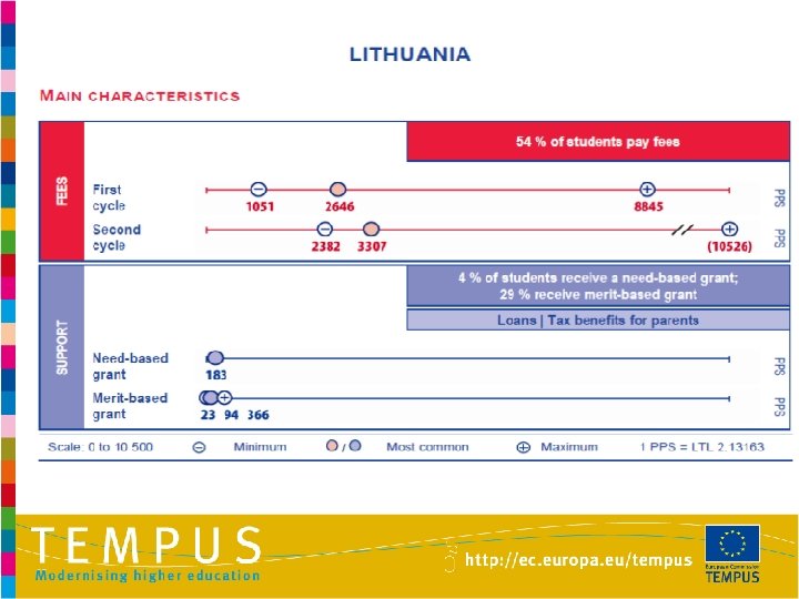 Student fees and support Four categories of EU countries 1. 1) countries where the majority of students pay fees and also receive grants 2. *Cyprus, Netherlands, Slovakia and the UK 3. 2) countries where a majority of students pay fees, while a minority receive grants 4. *more than half of the national systems 3) countries minority pay fees, and a majority receive grants (Nordic model) *Denmark, Malta, Finland, Sweden, the UK (Scotland), Liechtenstein and Norway 4) countries where only a minority of students pay fees, and where only a minority receive grants *Germany, Greece, Lithuania, Hungary and Austria