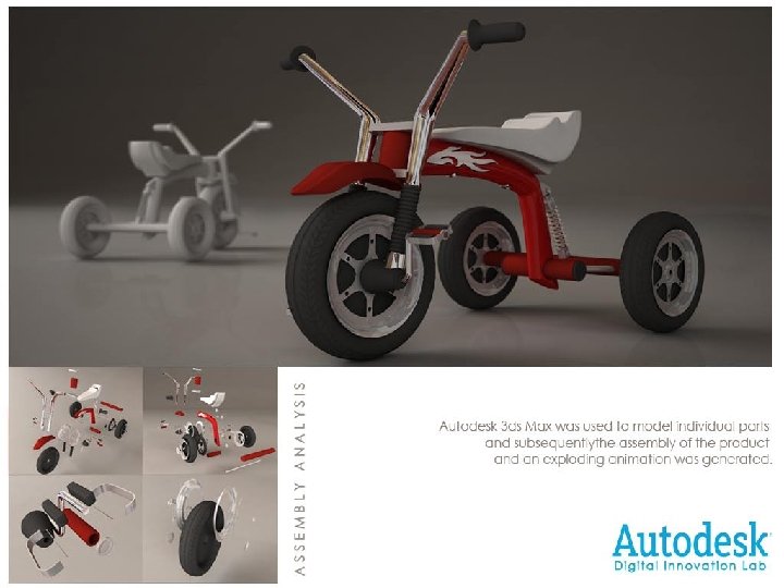 Major Software Autodesk Inventor® 3 D mechanical design software 3 D mechanical CAD tools for producing, validating, and documenting complete digital prototypes. 3 D digital prototype visualize, simulate, and analyze under real-world conditions
