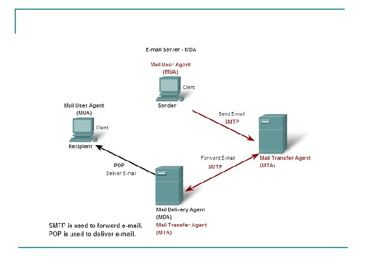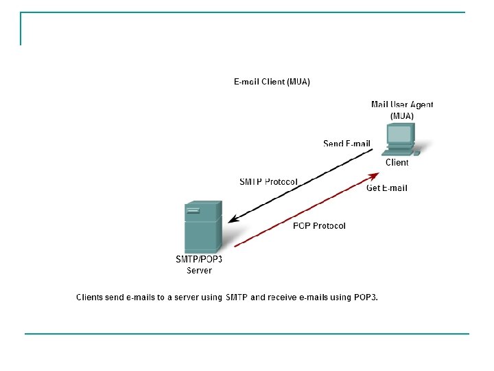 SMTP (Simple Mail Transfer Protocol) n n Menggunakan TCP sebagai dasar, port 25 3 fase dalam proses transfer: q handshaking (greeting) q transfer of messages q closure Command dan response q commands: ASCII text q response: status code and phrase Message dalam bentuk 7 -bit ASCII