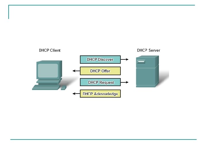DHCP n n Servis Dynamic Host Confirmation Protocol (DHCP) memungkinkan device di jaringan untuk memperoleh IP address dan informasi lainnya dari DHCP server. Servis ini secara otomatis memberikan IP address, subnet mask, gateway dan parameter jaringan IP lainnya. DHCP memungkinkan host memiliki IP address secara dinamis saat terhubung ke jaringan. Server DHCP memilih address dari ‘pool address’ dan memberikannya kepada host untuk waktu tertentu.