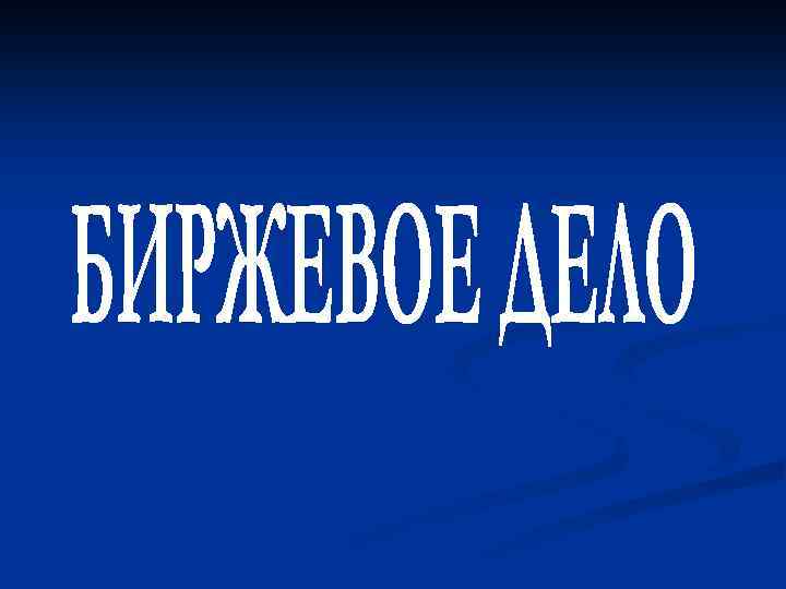 n Биржа – это организованный и регулярно действующий в определенном месте и по установленным правилам оптовый рынок. n Биржи подразделяются на: товарные; n фондовые; n валютные; n биржи срочных контрактов. n