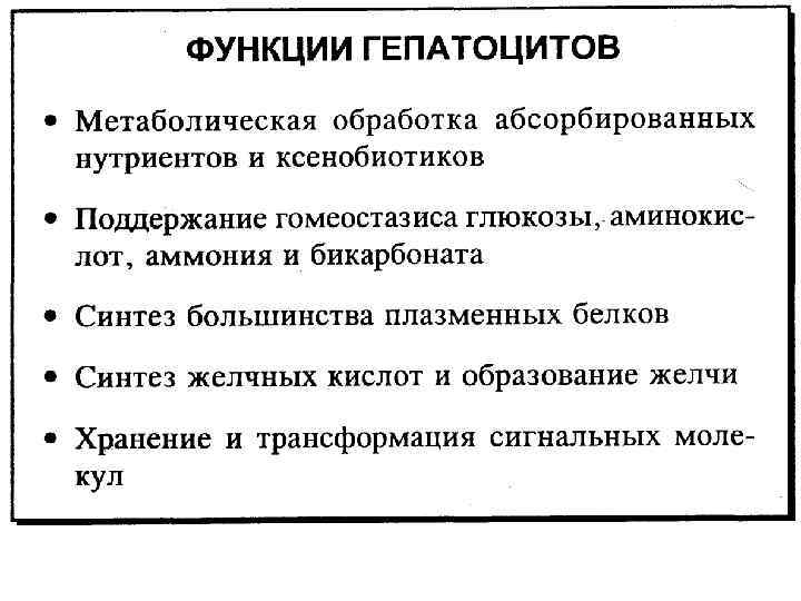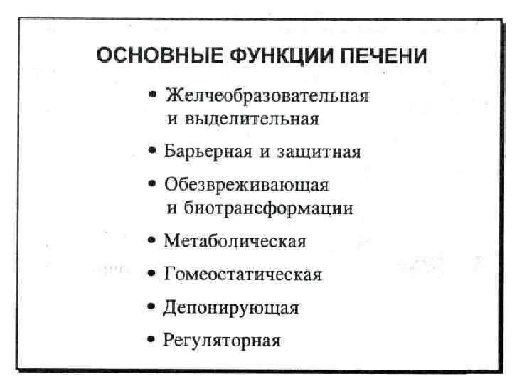 Функции печени • Жёлчеобразовательная и жёлчевыделительная • Экскреторная • Барьерная и защитная