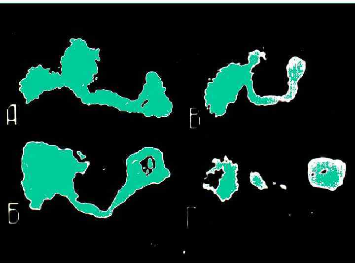Заполнена контрастной массой левая ветвь воротной вены 1 — контур ложа желчного пузыря; 2 — пунктиром показана истинная граница левой доли печени; 3 — линия, разделяющая правую и левую «классические» доли.