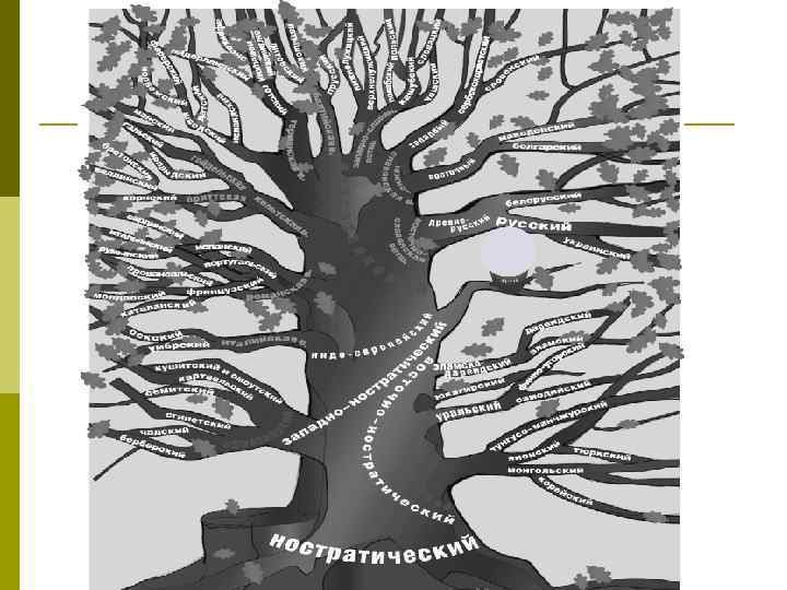 Русский язык p p по числу говорящих на нём занимает 5 место после китайского, английского, хинди и испанского. среди славянских языков русский — самый распространенный русский, белорусский и украинский языки образуют восточнославянскую подгруппу, которая входит в славянскую группу индоевропейской семьи. Праславянский язык — это язык-предок всех славянских языков. Он не имел письменности и не был зафиксирован на письме. Однако его можно восстановить путем сравнения славянских языков между собой, а также с помощью их сравнения с другими родственными индоевропейскими языками. Иногда для обозначения праславянского используется термин общеславянский.