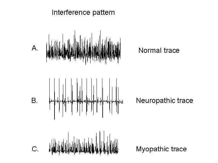 Амплитуда ПДЕ, м. В Длительность ПДЕ, мс Норма < 2 10 Денервация 10 -20 20 -30 Миопатия 0. 5 5 -10