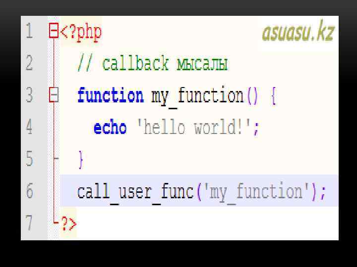 CALLBACK/CALLABLE - КЕРІ ШАҚЫРЫЛАТЫН ФУНКЦИЯ. • Бұл функция программа жазғанда ең көп қолданылатын әдістердің бірі. • Callback дегеніміз - бұл функцияға берілетін және де сол функция арқылы орындалатын функция: