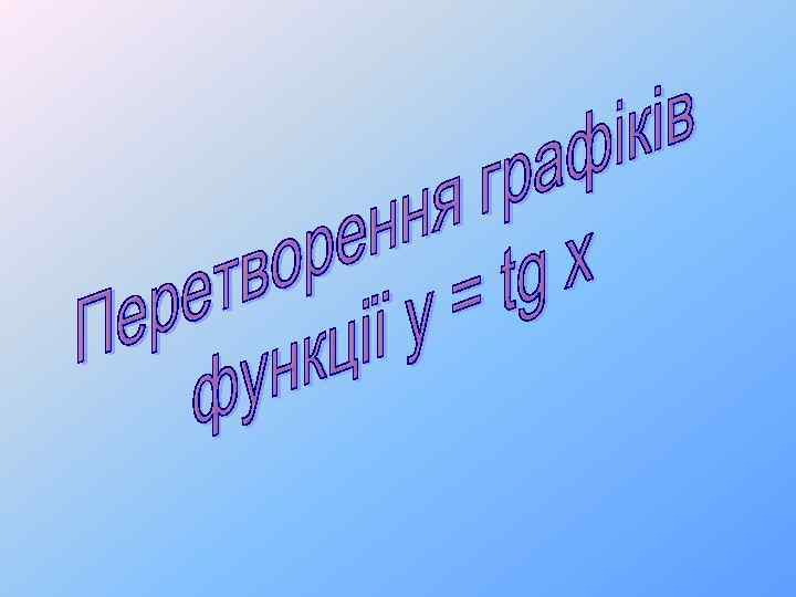 Побудувати графік функції y = - tg x Для побудови графіка функції y = - tg x необхідно графік функції y = tg x відобразити симетрично відносно осі OX. У Х