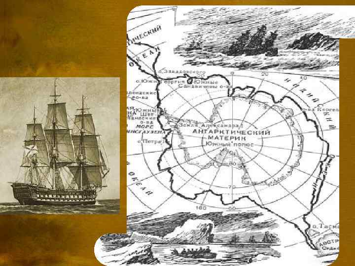 Второе кругосветное плавание 1819— 1821. Возглавил Фадей Фадеевич Беллинсгаузен. Выйдя 4 июня 1819 из В 1819— 1821 был В марте 1820 шлюпы разделились Поход экспедиции Беллинсгаузена по и пошли в Австралию (порт Кронштадта, экспедиция начальником кругосветной справедливости считается одним из самых важных и трудных, когда-либо Джексон, ныне Сидней) по прибыла 2 ноября в Рио-деантарктической экспедиции, Именем Беллинсгаузена названы: совершенных. Знаменитый Кук в 70 -х пространству Индийского и Южного Жанейро. Оттуда отправленной в годах XVIII века первый достиг Море Беллинсгаузена в Тихом океанов (55° шир. и 9° долг. ), ещё Беллинсгаузен сперва южнополярные моря. Она южнополярных морей и, встретив в океане, никем до того не посещённым. Из нескольких местах сплошной лёд, направился прямо на юг. В мыс на Сахалине состояла из шлюпов «Восток» Австралии экспедиция отправилась объявил, что далее его невозможно остров в архипелаге Туамоту, в Тихий океан, открыла несколько 1820 экспедиция открыла и «Мирный» . проникнуть на юг. Ему поверили, и 45 острова Фаддея и залив Фаддея островов и атоллов. Антарктиду. лет не было южнополярных экспедиций. в море Лаптевых, Беллингсгаузен доказал неверность ледник Беллинсгаузена, этого мнения и сделал чрезвычайно лунный кратер много для исследования научная полярная станция южнополярных стран посреди постоянных трудов и опасностей, на Беллинсгаузен в Антарктиде. двух небольших парусных судах, не приспособленных для плавания во льдах.