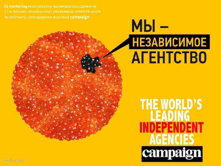 IQ MARKETING ОТЛИЧАЕТ КОНЦЕПТУАЛЬНЫЙ ПОДХОД Они известны как авторы сильных, живучих концепций, которые они создают, глубоко погружаясь в бизнес клиента, рыночные тренды, аудиторию и конкурентную среду.