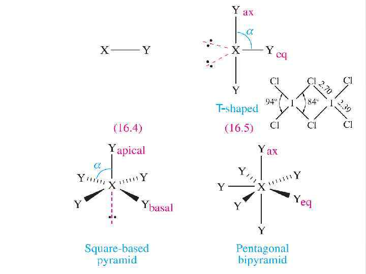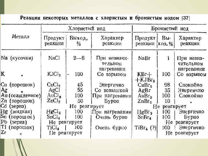 Межгалогенные соединения ФИЗИЧЕСКИЕ СВОЙСТВА Соединение Агрегатное состояние при 25°С tпл. , °С tкип. , °С Δf. H°, к. Дж/моль Cl. F б/цв. газ -156 -100 -50, 3 Br. F св. -коричн. газ ≈ 20 -58, 5 ICl красн. тв. 100 -23, 8 IBr черн. тв. ≈ -33 27 (α) 14 (β) 40 116 -10, 5 Cl. F 3 б/цв. газ -76 112 -163, 2 Br. F 3 желт. ж-ть 9 126 -300, 8 IF 3 желт. тв. -28 (р. ) ≈ -500 I 2 Cl 6 оранж. тв. 64 (суб. ) -89, 3 Cl. F 5 б/цв. газ -103 -13 -255 Br. F 5 б/цв. ж-ть -60, 5 41 -458, 6 IF 5 б/цв. ж-ть 100 -864, 8 IF 7 б/цв. газ 9, 5 5 (суб. ) -962