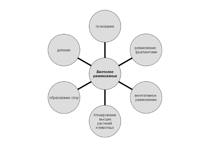 Примеры полового размножения У одноклеточных – Копуляция Конъюгация У многоклеточных – С оплодотворением (у большинства) Партеногенез (девственное размножение) (у некоторых – дафнии, пчелы, ящерицы) ( у инфузорий) (слияние, например у водорослей)