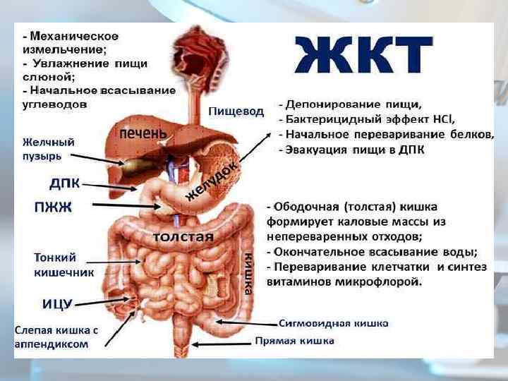 Продолжительность пищеварения в органах ЖКТ зависит от функции органа, количества и качества пищи. Пища, богатая углеводами, поступает в кишки быстро, белковая пища — медленнее, а жирная длительно задерживается в желудке.
