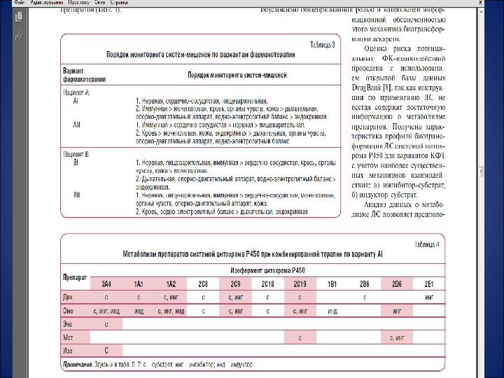 Типовая аналитическая таблица оценки потенциального взаимодействия Препарат/ Комбинация МИШЕНИ (фармакодинамика, токсичность, биотрансформация) Мишень 1 Препарат А + Препарат В + Препарат С + Комбинация А+В+С +++ Мишень 2 Мишень 3 Мишень 4 + + + ++ ++