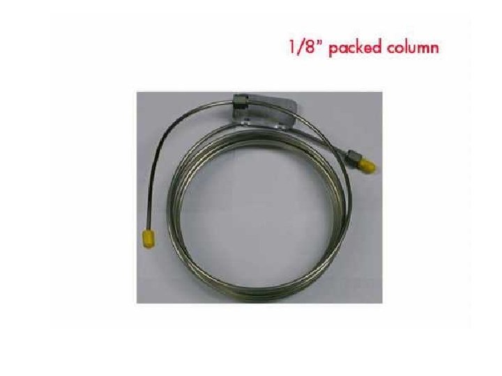 Packed Columns • These columns are made of stainless steel or glass. • They have diameters of 1/8 or 1/4 in (3. 18 or 6. 35 mm) and range in length from 1 to 3 m. • The internal surface of the tube is treated to avoid catalytic interactions with the sample. • These columns use a carrier gas flow rate of typically 10 to 40 ml/min. • Although they are still used in approximately 10% of cases for routine GC work, packed columns are not well adapted to trace analyses.