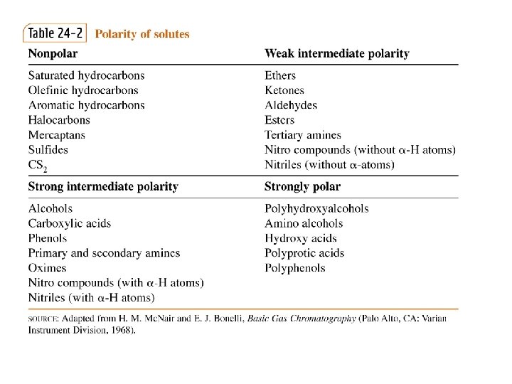 Criteria for Liquid Phases 1. Maximize differential solubility 2. High absolute solubility for sample (measured as t. R) • Solubility good but not too good. • Gas phase is inert & separation occurs only in Liquid Phase. 3. Thermal stability (Temp. Limitations) (Maximum & Minimum temp. ) Above which degradation occurs Below which equilibrium is Too slow to occur