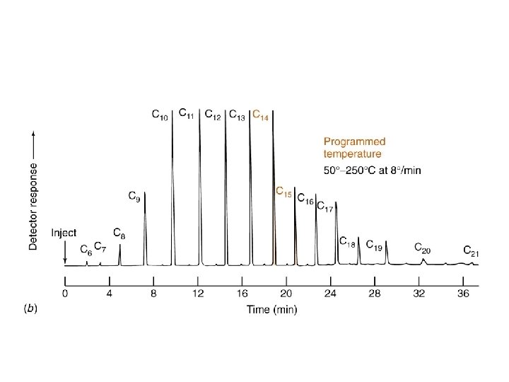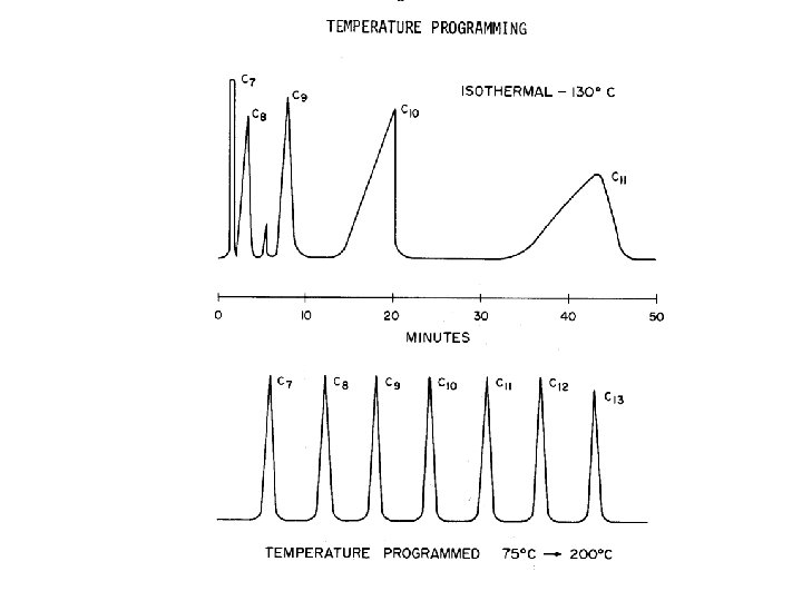 Narrow Boiling Range Samples • Isothermal column temperature should be used. • Select temperature 20 -50 o. C lower than boiling range of sample when thin films are handled. • Use highest temperature that still allows adequate resolution and stability to shorten analysis time.