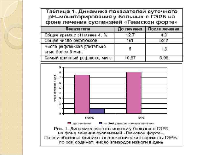 Пищеводные проявления ГЭРБ Изжога (ГЭР при р. Н<4; p. H>7) Отрыжка; Ощущение повышенного количества пищи во рту; Дисфагия или одинофагия; Ощущение кома за грудиной; Боль за грудиной (noncardiac angina -like pain).