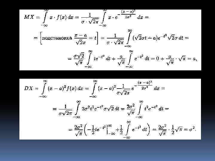 Математическое ожидание - MX = a Дисперсия - DX = σ2 Среднее квадратичное отклонение – σ = √DX = σ