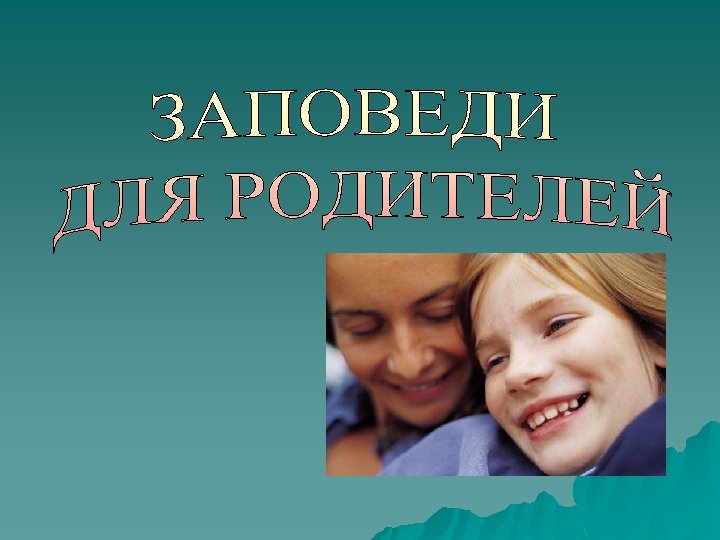 ОСНОВНЫЕ ЗАПОВЕДИ 1. Не занимайтесь воспитанием в плохом настроении. 2. Определите, чего вы хотите от ребёнка, и объясните ему это, а также узнайте, что он думает по этому поводу. 3. Предоставьте самостоятельность. Воспитывайте, но не контролируйте каждый шаг. Не подменяйте воспитание опекой. 4. Не подсказывайте готового решения, а показывайте пути к нему и время от времени разбирайте его правильные и ложные пути к цели. 5. Не пропускайте момента, когда достигнут первый успех. 6. Оцените поступок и сразу же сделайте замечание. 7. Главное оценивать поступок, а не личность. 8. Прикоснитесь к ребёнку и тем самым дайте почувствовать, что сочувствуете его ошибкам, верьте в него, несмотря на оплошности. Дайте понять (но необязательно говорить), что по окончании неприятного разговора инцидент будет исчерпан. Сущность человека и его поступки не одно и то же. 9. Воспитатель должен быть строгим, но добрым.