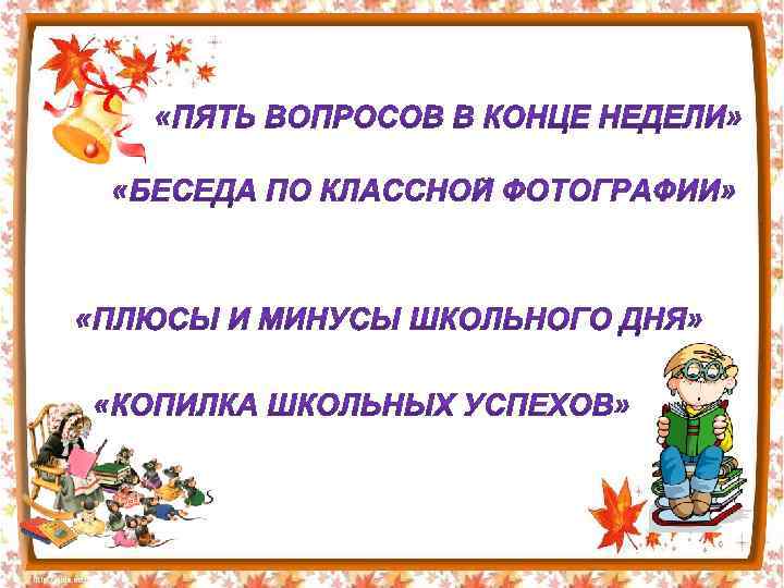 Каждый день интересоваться школьными событиями. Что сегодня было самое интересное? , Чему вы учились на уроке чтения? , Что веселого было на уроке физкультуры? , В какие игры вы играли? , Чем вас кормили сегодня в столовой? , С кем ты подружился в классе?