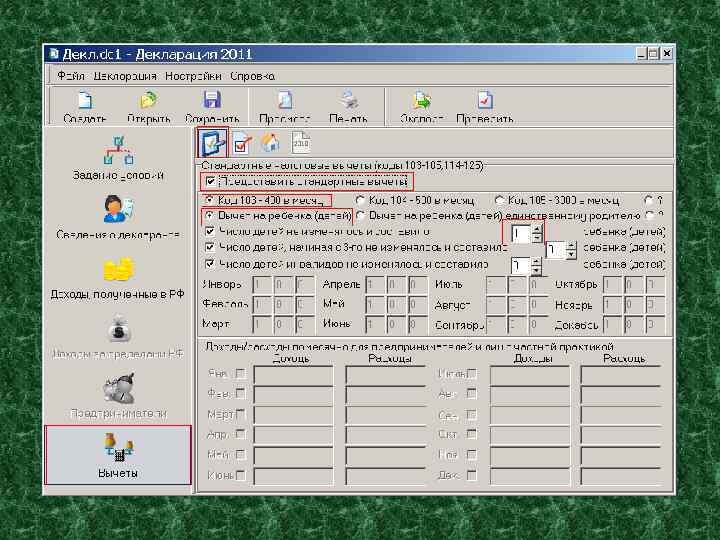 Налоговые вычеты по налогу на доходы на физических лиц делятся на: 1. Стандартные налоговые вычеты (статья 218 НК РФ) А) в размере 3000 руб. за каждый месяц, следующим налогоплательщикам: - инвалидам ВОВ; - ликвидаторам аварии на Чернобыльской АЭС; - инвалиды, военнослужащие I, III группы в следствии ранения. Б) в размере 500 руб. за каждый месяц: - Герои Советского Союза; - Участники ВОВ; - Инвалиды с детства; - Инвалиды I и II группы; - Граждане, выполняющие интернациональный долг в Афганистане.