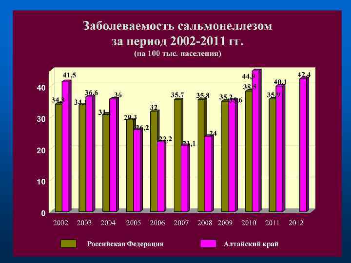 Ротавирусная инфекция 49. 3 57. 4 72 69. 57 69. 4 69. 6 64. 3 36. 6 32. 2 35. 9 46. 9 22. 9 14. 4 2. 3 26. 7 22 9. 6 4. 3 2002 11. 610. 6 2. 1 3. 9 2003 2004 Российская Федерация Алтайский край 2005 2006 2007 2008 2009 2010 2011 Норволк-вирусная инфекция в АК
