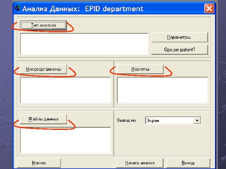 Компоненты WHONET @Настройка программы @Ввод данных @Анализ данных