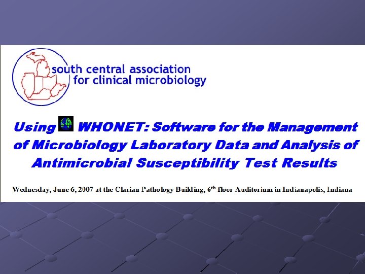ГБОУ ВПО Ниж. ГМА Минздрава России Программное обеспечение микробиологического мониторинга в медицинских организациях. Возможности программы WHONET Саперкин Н. В. , к. м. н. , доцент кафедры эпидемиологии, заведующий организационно-методическим отделом НИИ профилактической медицины Ниж. ГМА Саранск, 2014