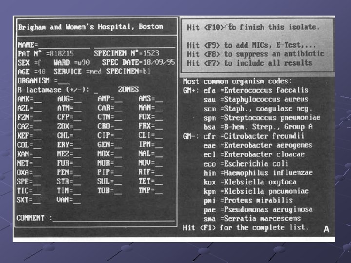 Surveillance of antimicrobial resistance: the WHONET program // Stelling J. M. , O’Brien T. F. – 1997. – № 24. – Suppl 1. – P. S 157 -158. “Genes expressing resistance to each antimicrobial agent emerged after each agent became widely used. More than a hundred such genes now spread selectively through global networks of populations of bacteria in humans or animals treated with those agents. Information to monitor and manage this spread exists in the susceptibility test results of tens of thousands of laboratories around the world. The comparability of those results is uncertain, however, and their storage in paper files or in computer files with diverse codes and formats has made them inaccessible for analysis. ”.