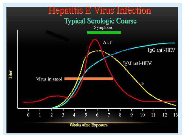 II. Желтушный период: - сохраняются симптомы интоксикации до недели и более тяжёлое течение у беременных во второй половине беременности у 20 -30 % - возможно развитие холестатических форм.