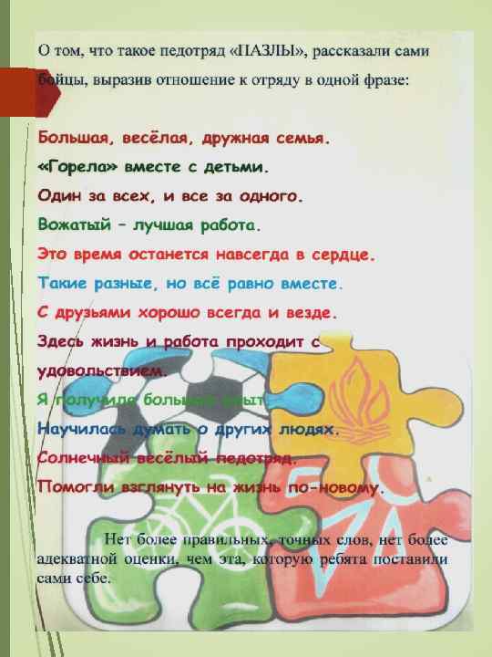 История создания отряда Началось все очень просто: студенты были в восторге от свей летней педагогической практики в детском оздоровительном лагере, от детей, для которых довелось стать «мамой» и «папой» на время смены и предложение руководителя летней практики «А давайте создадим свой педагогический отряд? !» , было тут же с радостью принято. Сразу родилось название «ПАЗЛЫ» . 2015 г.