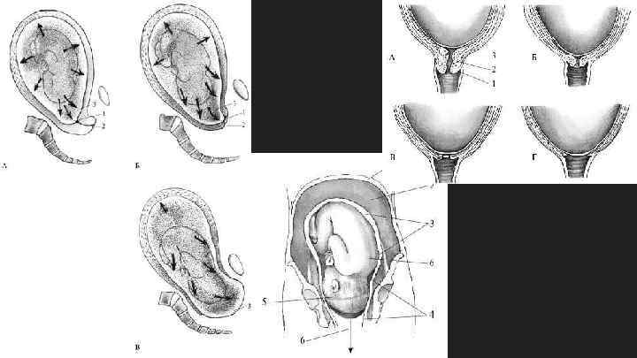Течение родов в периоде изгнания После полного открытия шейки матки и излития околоплодных вод родовая деятельность усиливается. На вершине каждой схватки к сокращениям матки присоединяются потуги. Сила потуг направлена на изгнание плода из матки. Под их влиянием головка, а за ней туловище опускаются по родовым путям ведущей точкой по проводной оси таза. По мере продвижения головка давит на нервные крестцовые сплетения, вызывая непреодолимое желание тужиться и вытолкнуть головку из родовых путей.