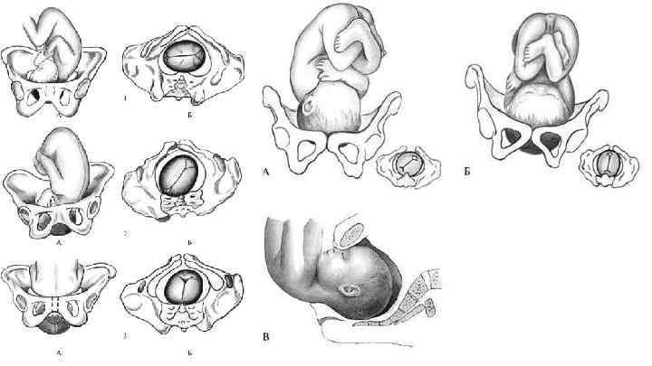 Механизмом родов является совокупность движений, совершаемых плодом при прохождении через родовой канал. В результате этих движений головка стремится пройти через большие размеры таза наименьшими своими размерами. Механизм родов начинается тогда, когда головка по мере перемещения встречает препятствие, мешающее ее дальнейшему движению. Движение плода под влиянием изгоняющих сил совершается по родовому каналу по направлению проводной оси таза, которая представляет собой линию, соединяющую середины всех прямых размеров таза. Проводная ось напоминает форму рыболовного крючка, в связи с изогнутостью крестца и наличием мощного пласта мышц тазового дна.