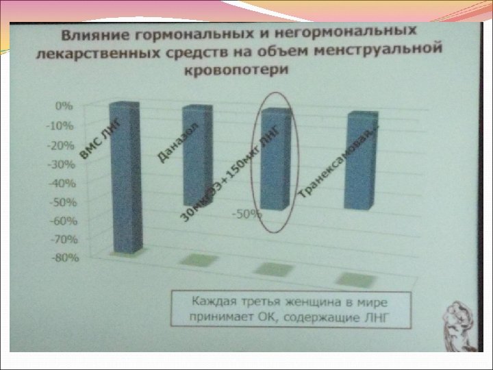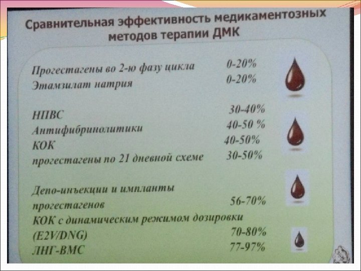 Лекарственные средства, зарегистрированные для лечения нарушений МЦ, в том числе маточных кровотечений Название ЛС Транексамовая кислота (транексам, циклокапрон, спатофф и др. ) Показания к применению ОМК Одобрение FDA Регистрация в России 2009 2006 ЛНГ-ВМС (Мирена) Идиопатическая меноррагия 2009 1998 EE/ЛНГ (Оралкон) Гормональнозависимые нарушения МЦ 2012 Е 2 V/DNG (Клайра) ОМК без органической патологии 2012 2013